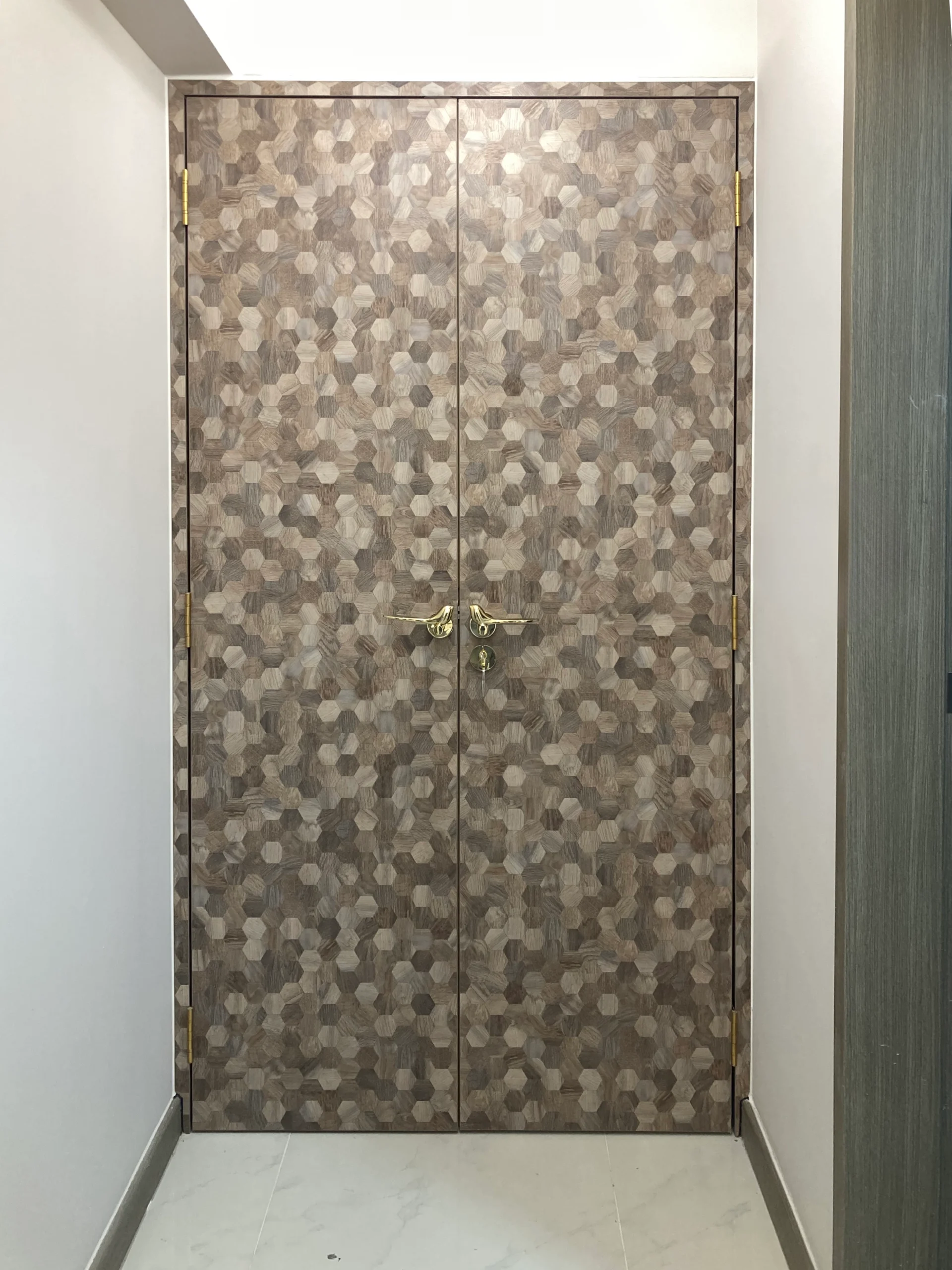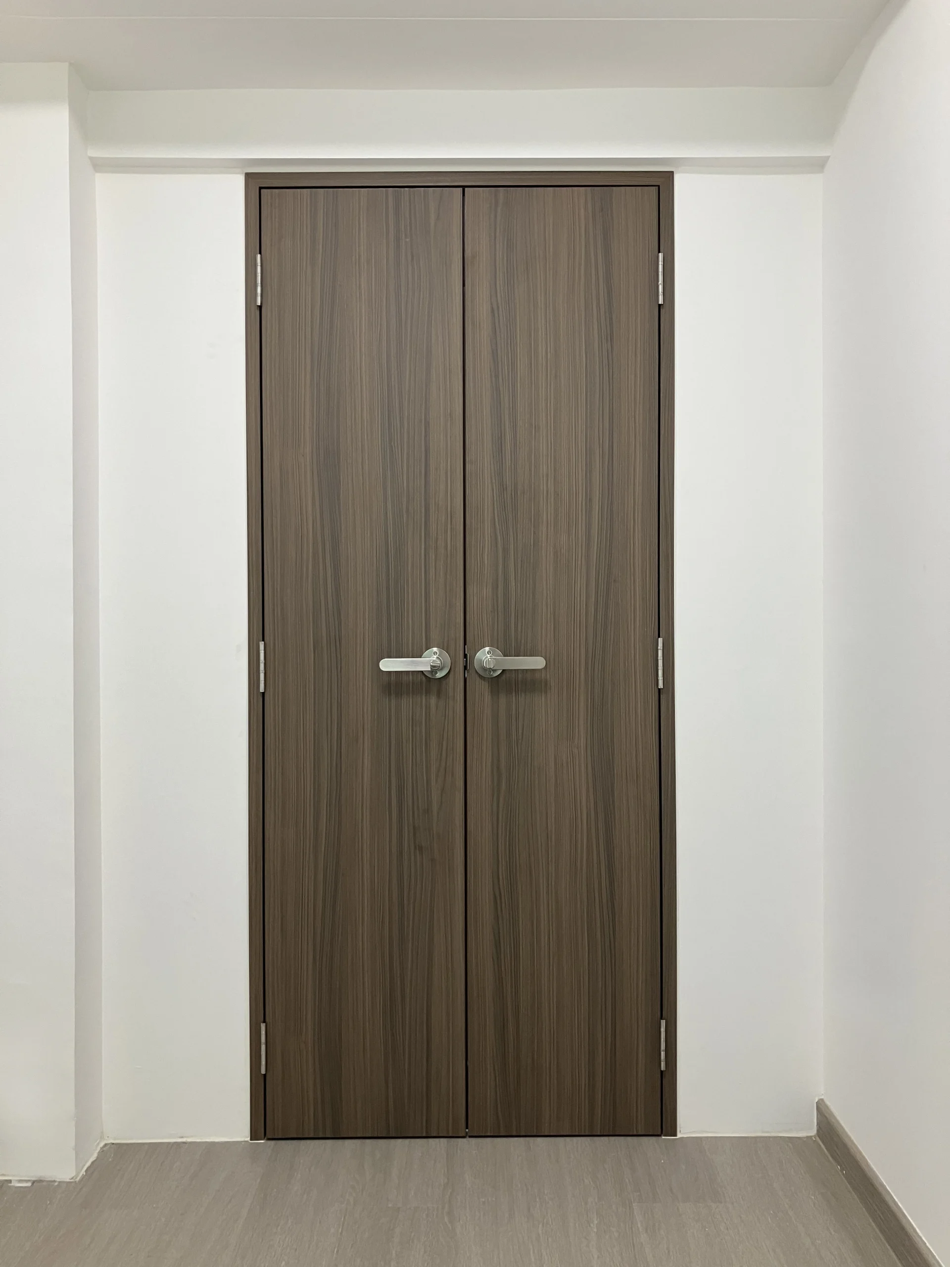 In Singapore, there are many stylish double-leaf door designs to choose from. You can opt for modern laminate design for a sleek look, glass-paneled French doors to allow natural light in, or wooden double doors to create a grand entrance. Many designs also allow you to customize handles and locks. Depending on the material, double-leaf doors can be used for main entrances, bedrooms, or even bathrooms, offering both flexibility and aesthetic value.