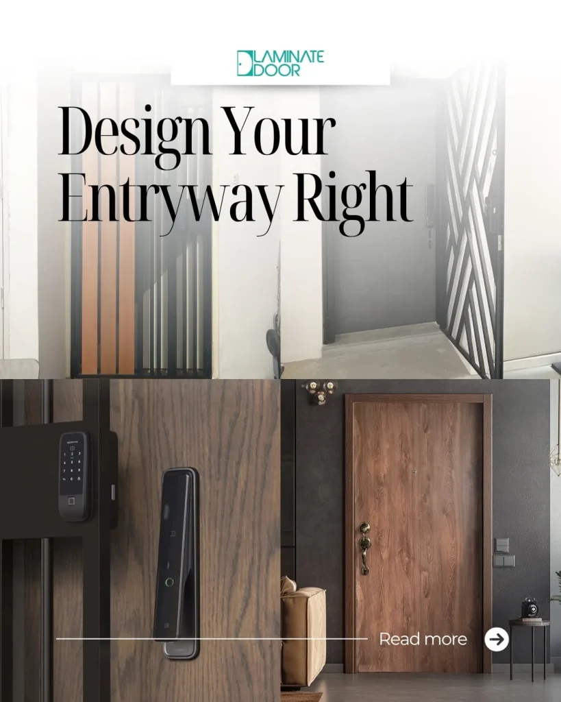 Your main door is the focal point of your entryway. Laminate doors are a top choice for their sleek finishes, antibacterial surfaces, and design flexibility. Whether you prefer a modern matte look or natural wood grain, start with a door that reflects your interior style. For example, minimalist homes benefit from clean-lined, light-toned finishes, while darker laminates suit bold or industrial interiors.