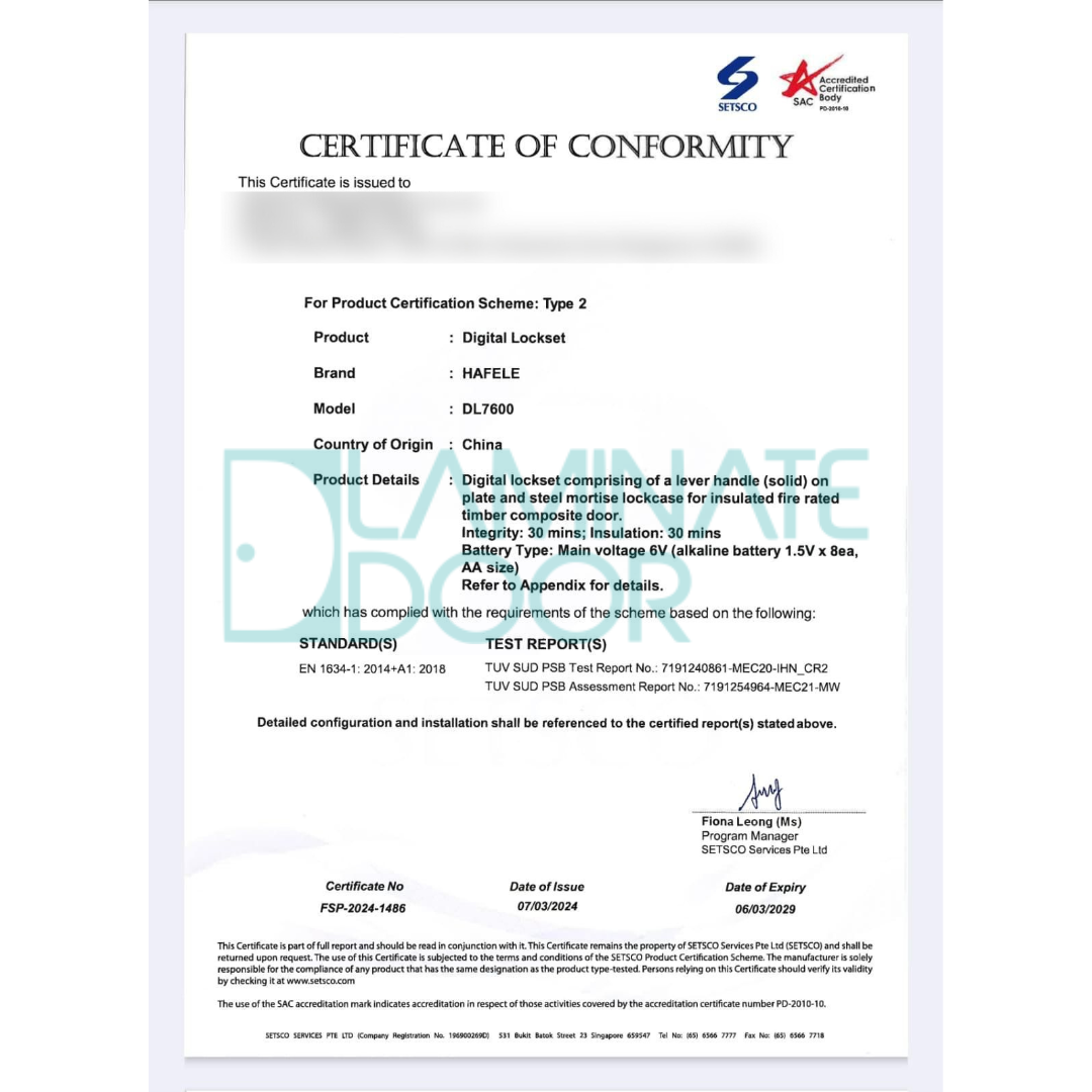 | Model | Hafele DL7600 Digital Door Lock |