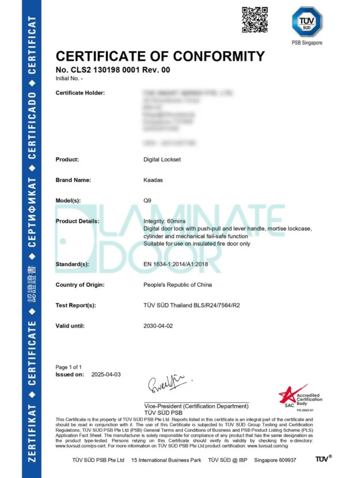 Kaadas Q9 Face Recognition Digital Door Lock ( Fire Rated Certified)