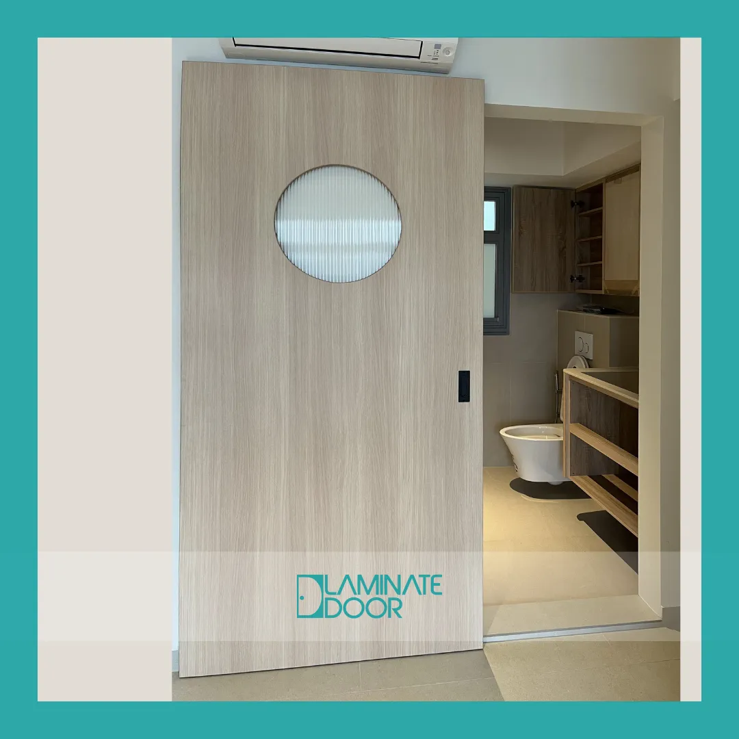Upgrade your home with the laminate sliding door, designed for both elegance and efficiency. The laminate ensures durability, while the circular fluted glass panel adds a unique visual appeal, allowing soft light to filter through while maintaining privacy. Ideal for HDB BTO, and condo interiors, this space-saving sliding door is a perfect choice for modern homes.
