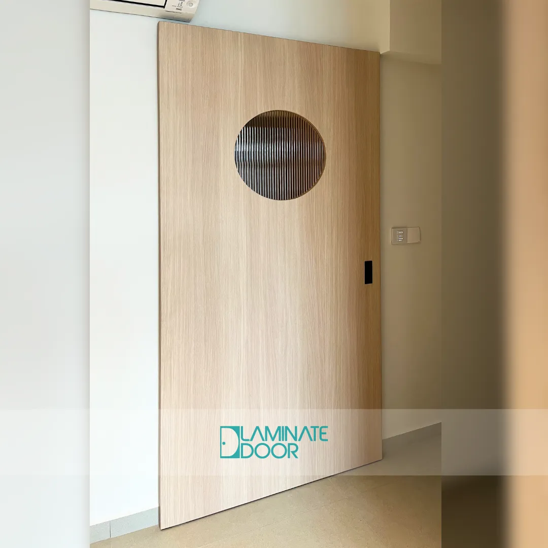 Laminate Sliding Door with Circular Fluted Glass Panel