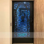 This laser cut gate special for Islamic pattern this design having black, white and grey color design looking like the thin inside line contain flower designs and shows the uniqueness fashionable and elegant it would be perfect for modern house as well as traditional one also providing half coverage this laser cut gate is sturdy, heavy, ideal for main gate.
